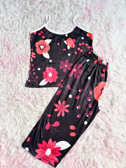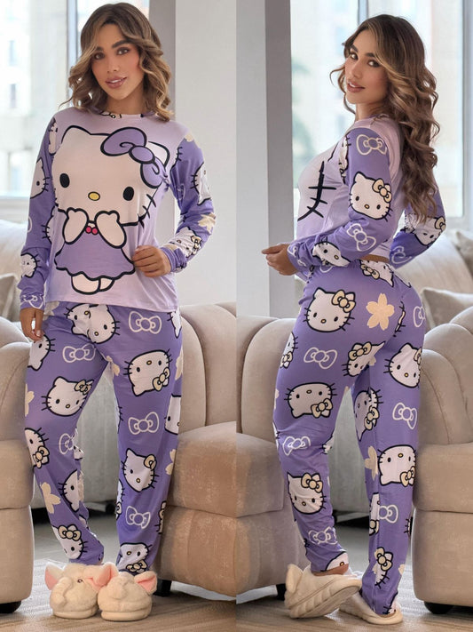 SUBLIMATED PANTS PAJAMAS WITH SINGLE-COLOR BLOUSE